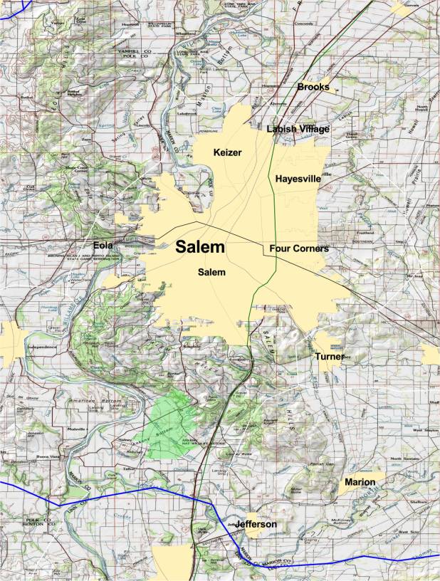 on the north beyond Keizer, Hayesville, and Labish Village. On the west it