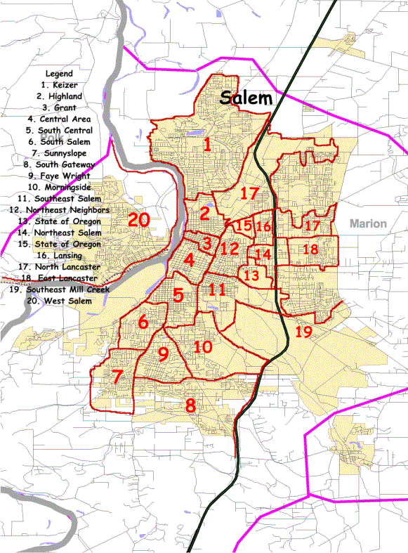 32 shows a map of Salem with the approximate neighborhood areas as defined by