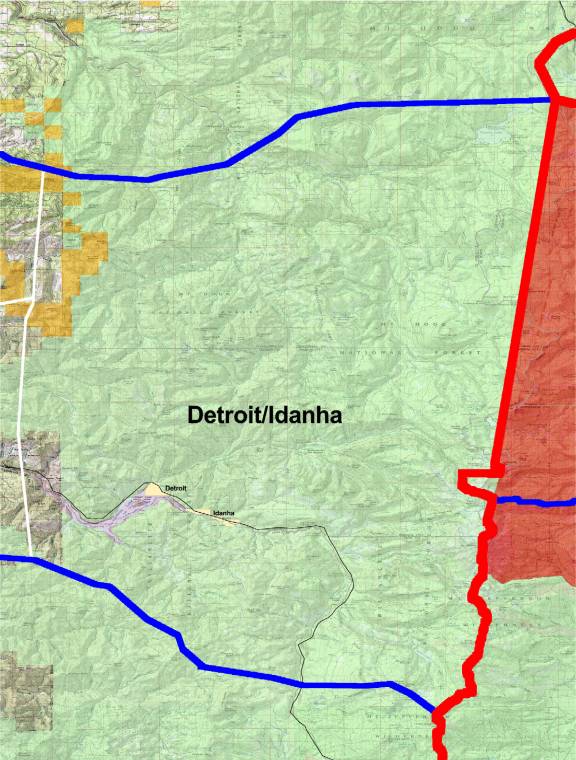 Detroit and Idanha are only three miles apart. It is clear that the two towns are closely linked and have realized that working together makes each stronger. Detroit, by virtue of the lake, is the recreation center. Idanha, by virtue of flat land, could be the industrial center. A new subdivision is being built just on the edge of Detroit, with mid-sized lots right along the river. It is expected that these lots will be for "wealthy retired folks." Real estate activity is said to be low at the moment. A number of people leave the community in the wintertime.